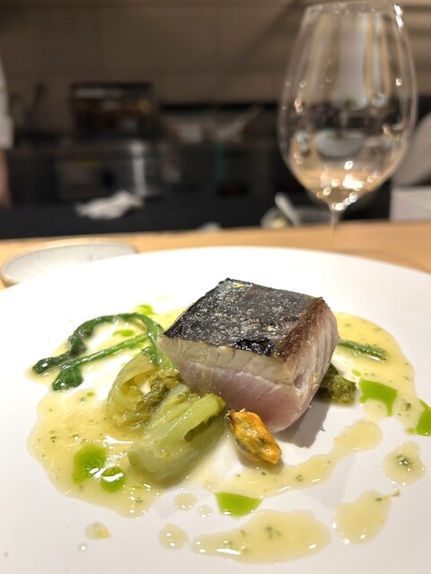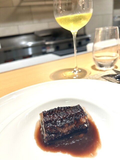 ワインのペアリングコースは特にない、というところがまた潔いではないですか。ボトルでの提供のほか、都度相談すればおすすめのワインをグラスでいただけるスタイル。昨今は、お料理のコースに加えてワインをペアリングで頼まないと客単価落ちるよねごめんなさい、と肩身が狭いことが多い 量を飲めない私も