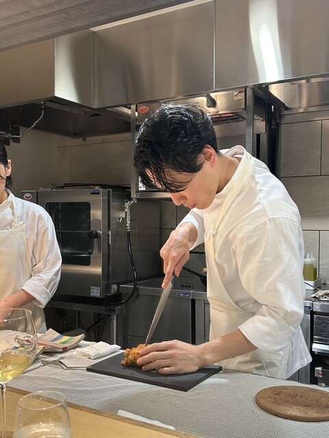 ふわりぐわりと漂う香りを楽しみつつ、活きている食材を拝みつつ、金川シェフとアシスタントの方との息の合った美しい動きに見惚れてしまった。