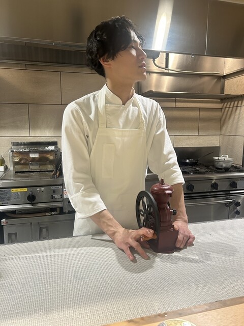 食後のコーヒーも目の前で挽いてくれます。