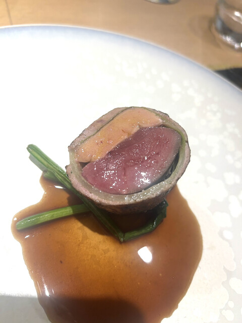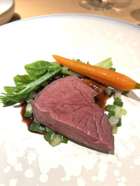 メインの、菊池源吾牛のロティです。綺麗でしょ。品の良い旨味がたっぷり♡大人仕様ですね