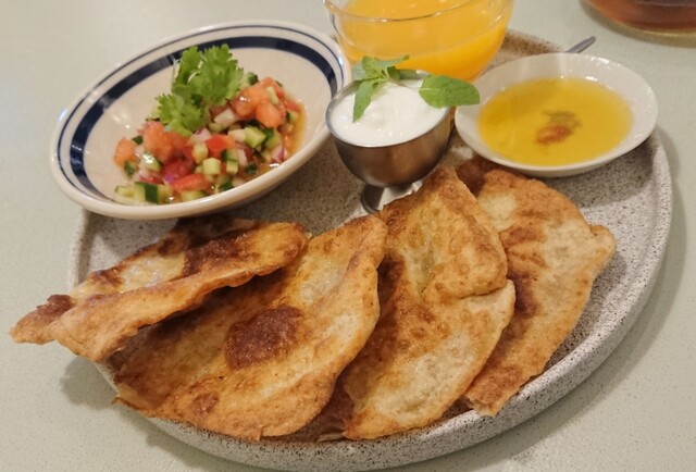 いろいろ組み合わせて頂いてみましたが、私はフムス+サラダの組み合わせと、ヨーグルト+はちみつの組み合わせが気に入りました。