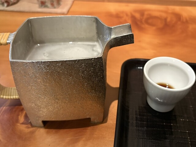 食後の楽しみ、そば粉入りの蕎麦湯は、とろりとした濃厚な味わいで、そばの風味を最後まで堪能できます。