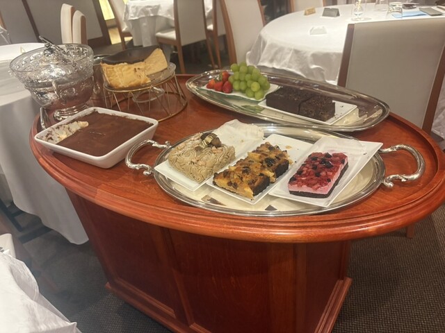 食事の締めくくりは、楽しみにしていた「デザートワゴン」。ティラミスやモンブラン、いちごやシャインマスカットなど、好きなものを好きなだけ選べるのが嬉しく、心ゆくまで余韻を楽しめます。