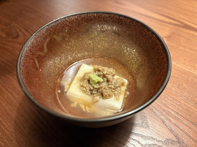 一品料理の「麻婆胡麻豆腐」は、胡麻の濃厚なコクとピリッとした刺激がクセになる新感覚の美味しさ。さらに「せせりのレモン醤油」は、脂の乗ったせせりをレモンでさっぱりと引き締めていて、コースの構成も完璧です。