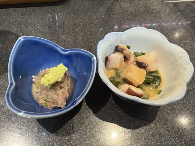 お通しを二品出してくださり、こちらも美味しくて出てくるお料理の期待がさらに高まります。