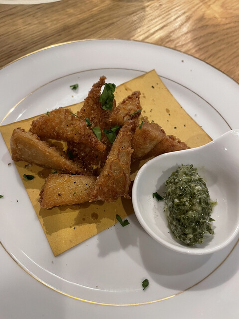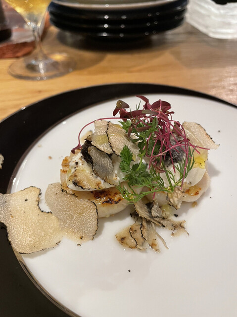 店主がワンオペで回しているカウンター8席のイタリアン。学芸大学駅から歩いてお店に近づくとビルの1階角が爽やかな青で浮き上がっている。店主のシャツもお店と同じ色、屈託のない笑顔がとても素敵でした。オーダーが入るとテキパキと調理しワンオペでの待たされてる感はなし。優しい味のお料理にチーズやカラスミをガーっとかけてビシッと決まってワインが進む進む。メニューの数が驚くほど多く、ワインのラインナップも素晴らしい。一人でも入り易い雰囲気で行きつけにしたいお店でした。