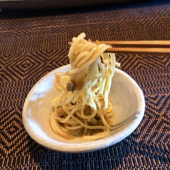 奈良の三輪そうめんを使った胡麻パスタ風
