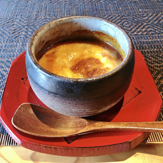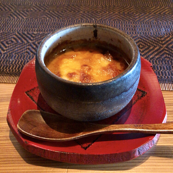 スープなのに中からプリンのように滑らかな蟹みそのフランが登場!濃厚で幸せ感じる一品♡