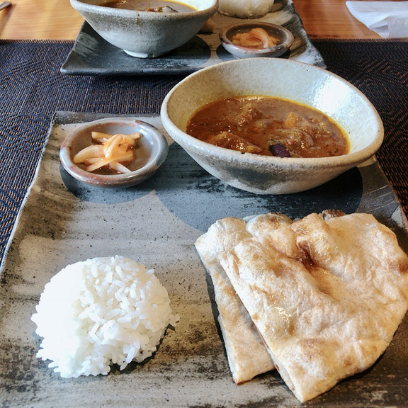 ナンは北海道産小麦と全粒粉をブレンドして焼かれた、もちもち食感だけど香ばしさもある軽めのナン。