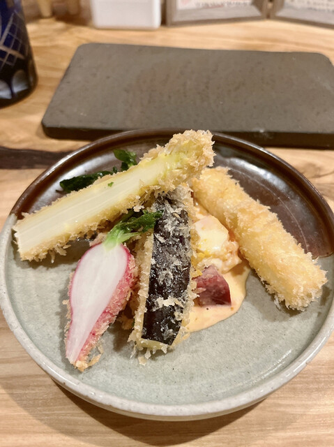 ラディッシュ、ホワイトアスパラ、水なすをビーツのタルタルソースで頂きました。程よい酸味とビーツ独特のコクがタルタルとよく合い、どれもみずみずしいお野菜ばかりなのでペロッと食べちゃいました。ホワイトアスパラが激ウマ( ˶¯꒳¯˵)。o♡