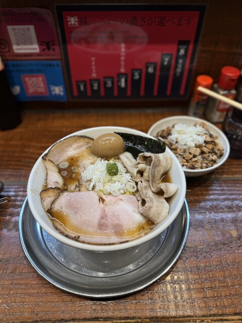 年末年始の休みに入り、昼間のサ活でととのったあとは、こちらへ。おそらく今年のがんこ締めになりそうなので、今日は思い切って「限定10番 金子畜産 伊豆の極みもも肉(3枚)チャーシュー麺」を選択。味玉トッピングの大盛で豪勢にいただきました!