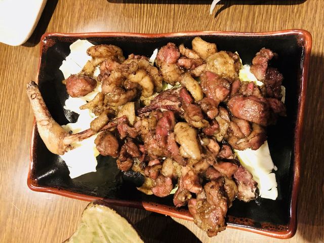 砂ずりの唐揚げ(通称ずりから)はタマネギがのっていてあっさり味のタレがかかっているのでサラダ感覚で考えていただければいいんじゃないでしょうか!