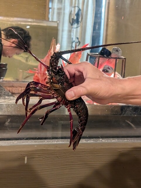 ここのコンセプトは捌きたてを惜しげもなく調理することのようで水槽があり水槽の中にはフグや伊勢海老など色々な海の生き物たちが泳いでいます