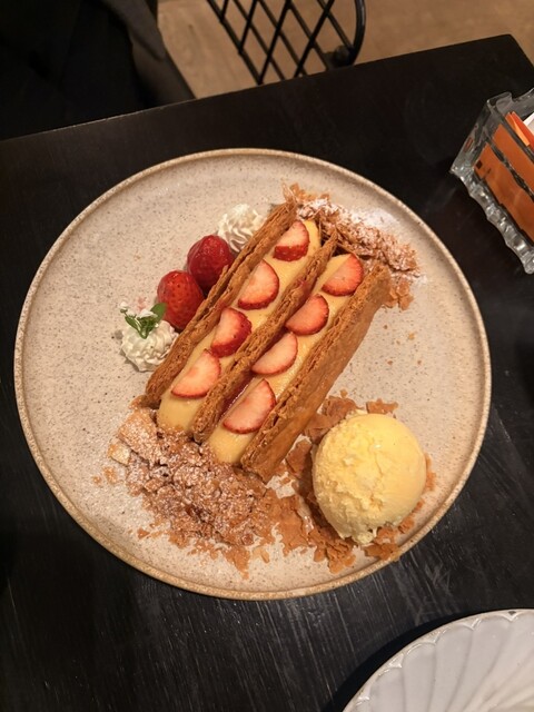 いちごのミルフィーユは贅沢にいちごがたくさん入っていました。