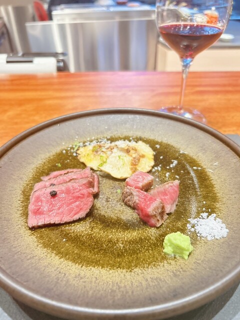 黒毛和牛の炭火焼きと人参の岩塩焼き