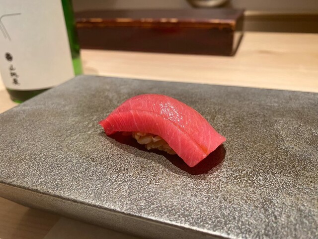 まず度肝を抜かれたのは、ガツンと赤酢と塩が効いたパンチのあるシャリ。口の中でハラリとほどけ、ネタの旨味を力強く引き立てます。