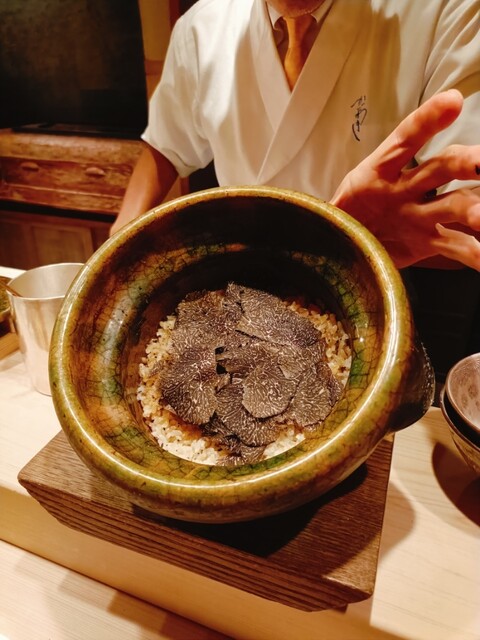お店の代名詞とも言える黒トリュフご飯。一口食べた時のトリュフの香りは、まさに「飛び跳ねるような」という表現がぴったりの鮮烈さで、言葉を失うほどの衝撃でした。