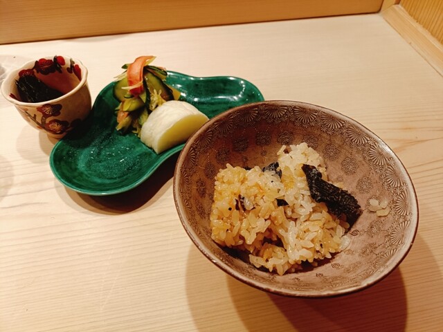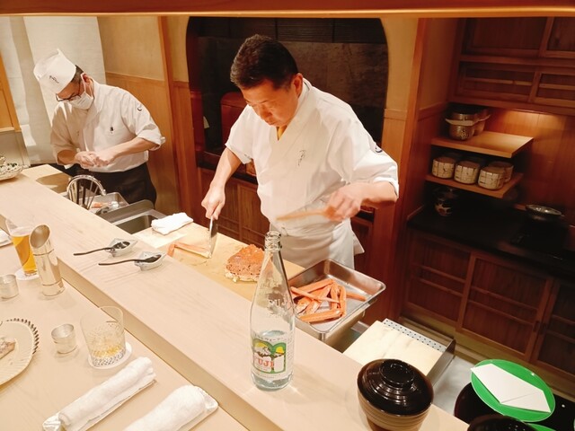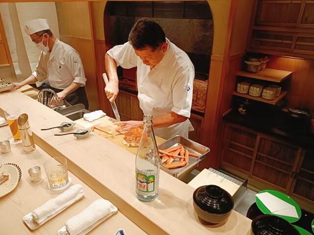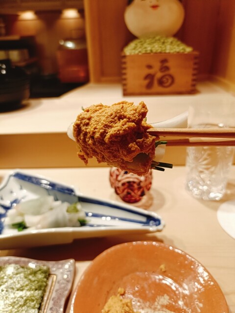 今回はわずか6席の特別なカウンターに案内され、至高のコースを堪能しました。記憶に残るほどのセコガニを使った茶碗蒸し。蟹ミソの旨みが凝縮されたその味わいは、思わず涙が出そうになるほどの深みがあります。