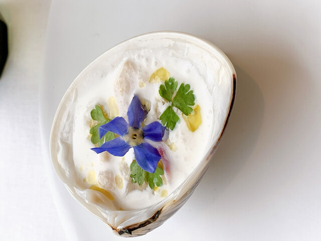 ハマグリの器にハマグリのソース