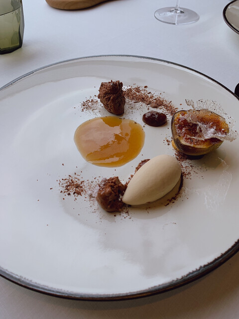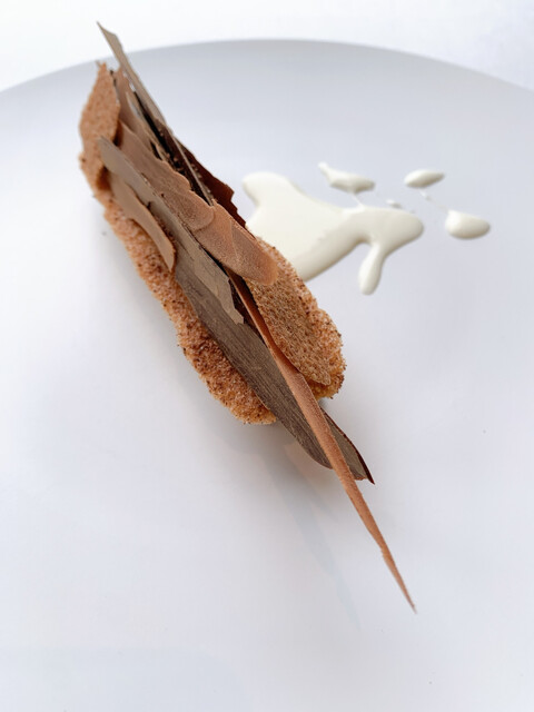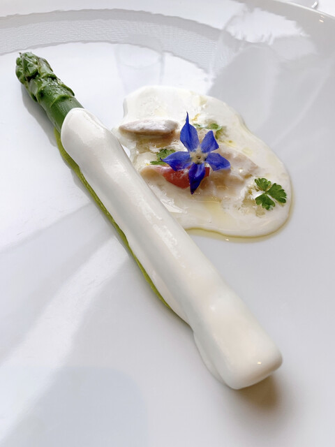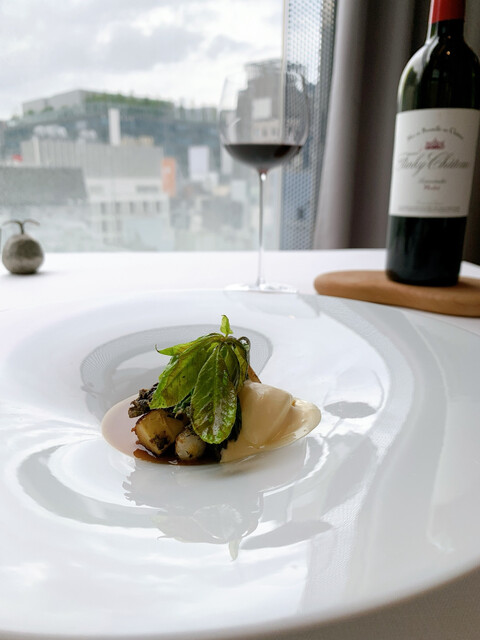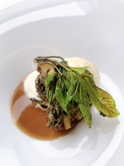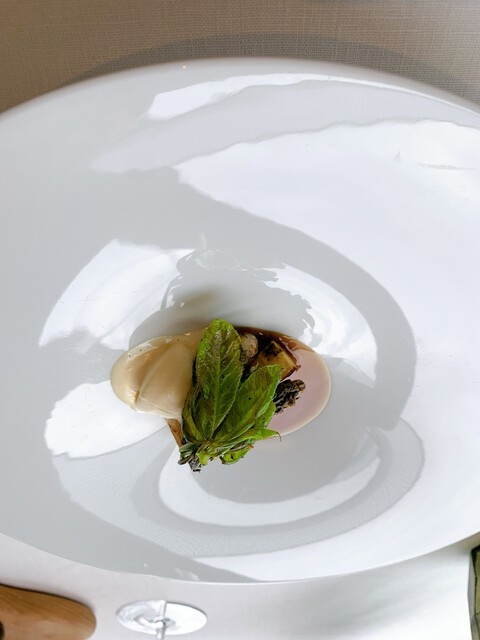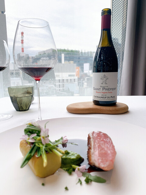蕗のとうのペーストの苦味と合うようタンニンがあるものを、そして蝦夷鹿が脂分が少ないのでタンニンがベルベットのように滑らかなものをというチョイス、だそうです。