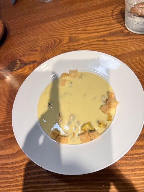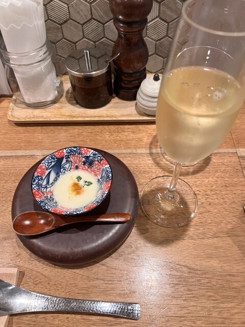 お店は閑静な場所にあり店内もアットホームな雰囲気ぬ包まれていてご夫婦もめちゃくちゃいい人たち。そして料理もお酒もどれもこれも抜群に美味しかったです。スパで乾杯からのナチュールワインのボトルを2本ぐらい...