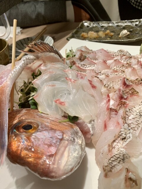 今回は週末に釣った、マハタ、ヤガラ、マトウダイ、カワハギで楽しませていただきました。マハタは4.7キロ、ヤガラは2.0mとかなり大物だったのですが、嫌な顔をせず調理していただきました。そして出てきた料理は感動の連続!マハタの刺身は藁焼きのあぶりと塩で食すなど、食材の良さを最大限に引き出していただき、本当に感動品質でした。カワハギやヤガラの刺身、途中の椀物、焼き物、〆の寿司、どれも想像を超えた逸品でした。店長さんのおかげで人生が豊かになります。本当にありがとうございました。
