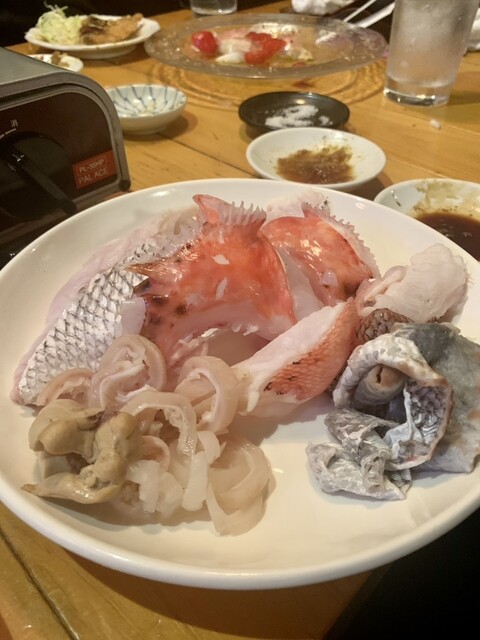 特に刺身は、普段食べてる薄造りとは違い、素材の良さを感じられる、角の立った厚めのもので、メチャクチャ美味かった。真鯛や鬼カサゴの肝や胃袋の刺身は初めて食べたけど、臭みも無く、美味いじゃないか(なぜ、今まで捨ててたのだろう、と後悔)。加えて、鹿児島の甘醤油や塩まであって、色々な味わいを堪能させていただきました。