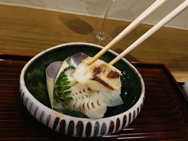からすみ大根 即興目の前で、作ってくれました( ˶ˆ꒳ˆ˵ )