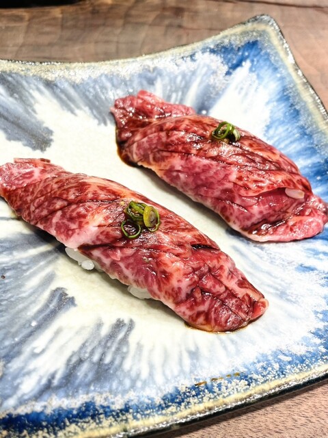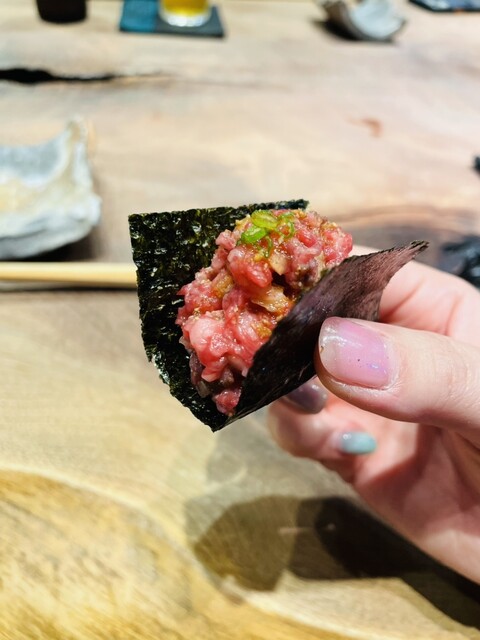 うすなが牛を、たくわん、韓国のり、淡路のりを巻いて。 あら、美味しい。