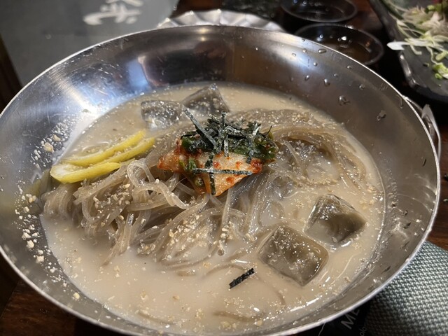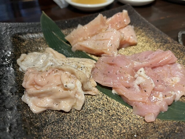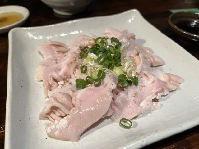 最後に焼きしゃぶをレアで、コムタンスープ風の冷麺で〆る。しかし私はこれで終わらない。ハツ刺しとガツ刺しを追加で注文。にく式さんに来たらこの2種の刺身は必食です。しっとり濃厚なハツ刺しと食感コリコリのガツを生姜醤油でさっぱりいただくガツ刺しは唯一無二の旨さです。