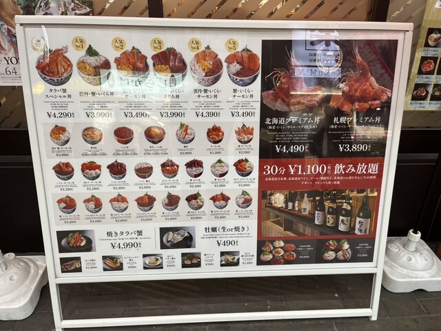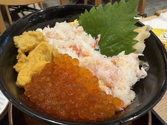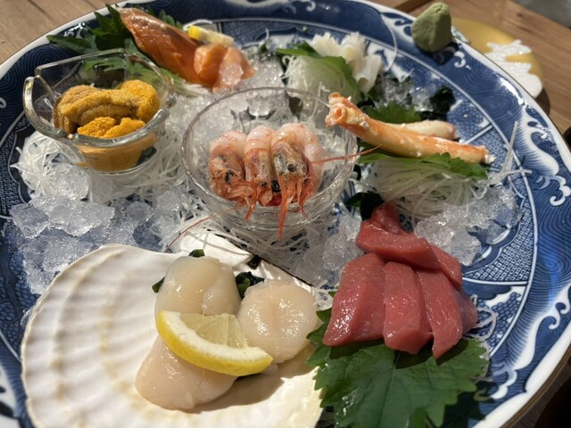 刺身7点は新鮮そのもの。雲丹の粒感もしっかりあり、帆立、海老、カニと味が厚い。焼きタラバ、焼き帆立と北海道を丸ごと味わい、トドメの海鮮丼。