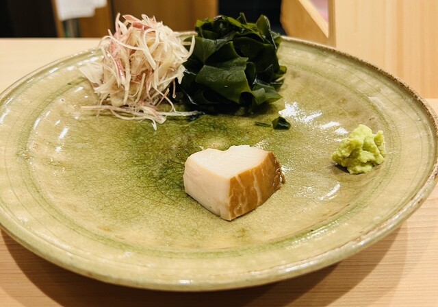 まずは、お刺身で、大分、城下カレイ、秋田の本あら、勝浦のカツオ、鮑と、初手から綺麗で旨味の乗った質の高さが際立つ素材が続き心が掴まれます。