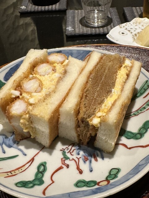 以前から常連フーディさんからおすすめされていた、サイドメニューのふかのヒレサンドとエビフライサンドをお願いしてみた。