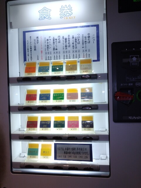 具材全部入りの特製である、まるきそば中盛(1200円)とチャーハン小(400円)の食券札を買ってカウンターに置く。