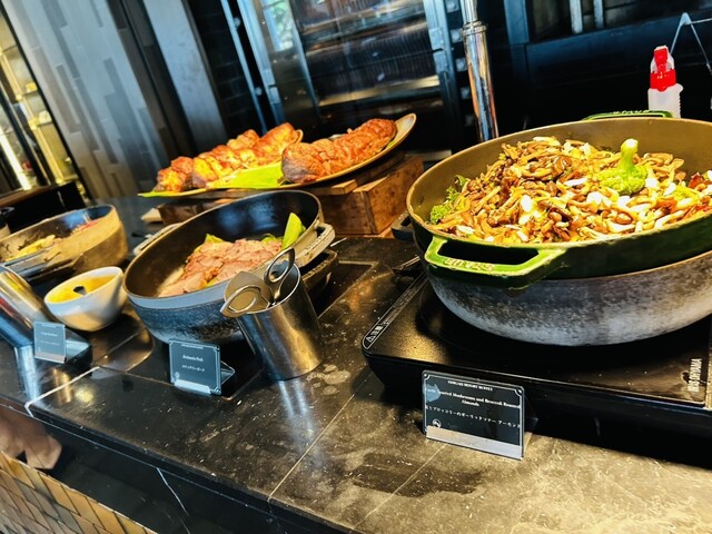 オムレツは具を好きに選んでその場で作るライブキッチンが良いψ(`∇´)ψ私は、ほうれん草、きのこ、チーズのオムレツを作ってもらいました♪