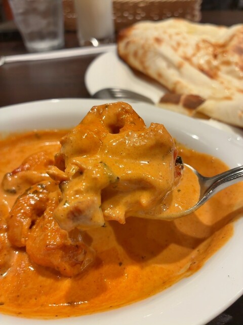 タンドゥールで焼かれたチキンは、香ばしくて奥深い味わい、また、ナンとの相性もばっちりです。