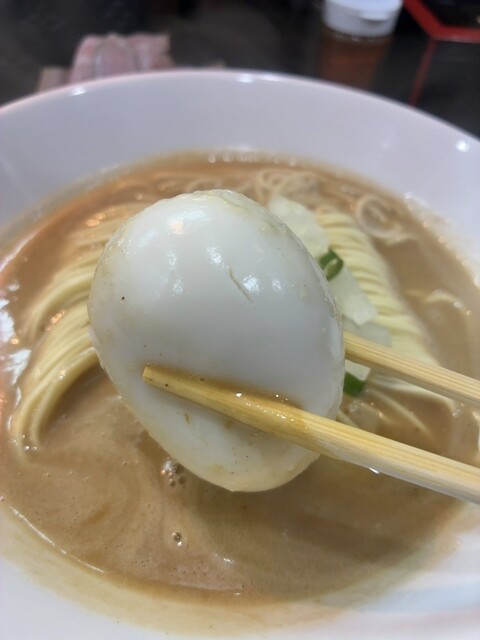 煮干の旨みがガツンと効いた濃厚なセメント系スープで、エグみは一切なく、まろやかで奥行きのある味わいです。