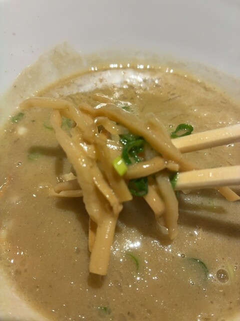 小麦の香りが心地よく、胚芽入りなので麺の表面にザラつきがあり、スープに漬けた際にスープを持ち上げてくれます。