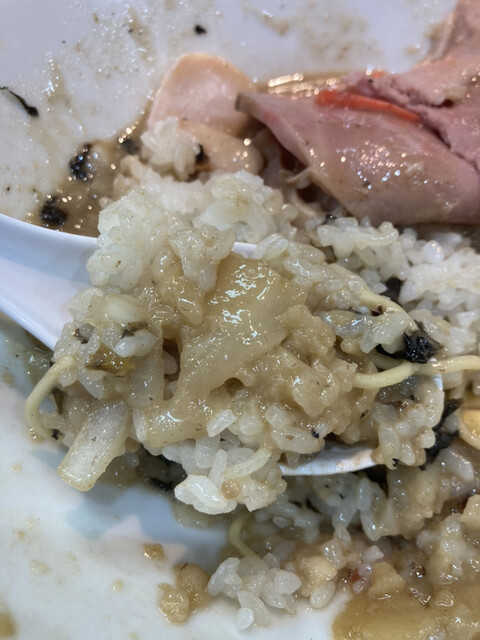 追いメシを投入するやアブラと濃厚スープを吸い上げた米の破壊力たるやヤバいです‼︎