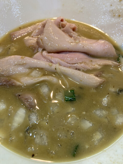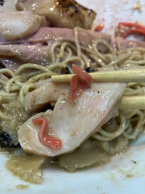 トッピングの鶏レアチャーシュー、レアチャーシューともにしっとりとしたチャーシューに仕上がっていて、これまたスープと合います。