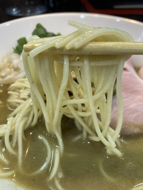 パツパツ細麺を持ち上げるとスープまで持ち上がる濃厚さ。
