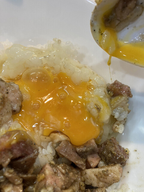 今度は生卵混ぜての肉ごはんをパクり、ごめんなさい、降参です、旨すぎて気絶しそうです。