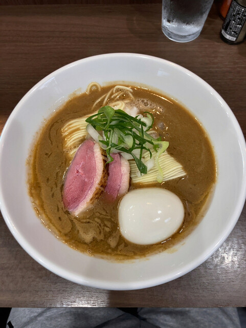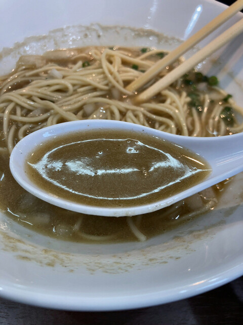 名古屋コーチンとはちきん地鶏と水だけで炊いた鶏清湯に、オリーブいりこ・高知特上・九十九里背黒を入れて潰さずに香りをうつす位に炊かれています。