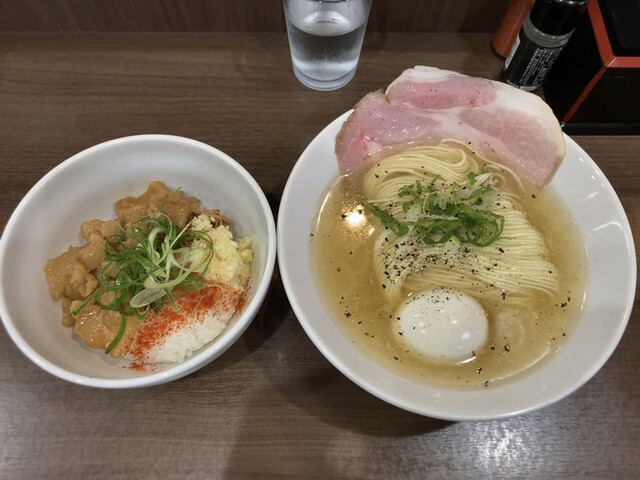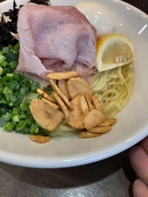 余計な物を削ぎ落とした鶏と水と煮干のスープに名古屋コーチンの鶏油、塩ベースのスープは、最初に鶏をしっかり感じながらも、あと味で煮干が追いかけてきます。