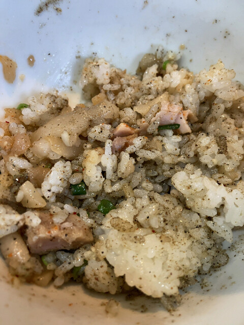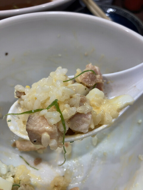 少しごはんを残して、担々スープの中にごはんをドボンします。