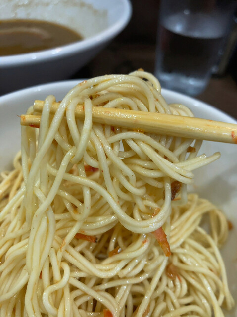 鯛煮干をふんだんに使用したスープは、鯛の旨味が凝縮された若干シャバ目の仕上がりになっています。