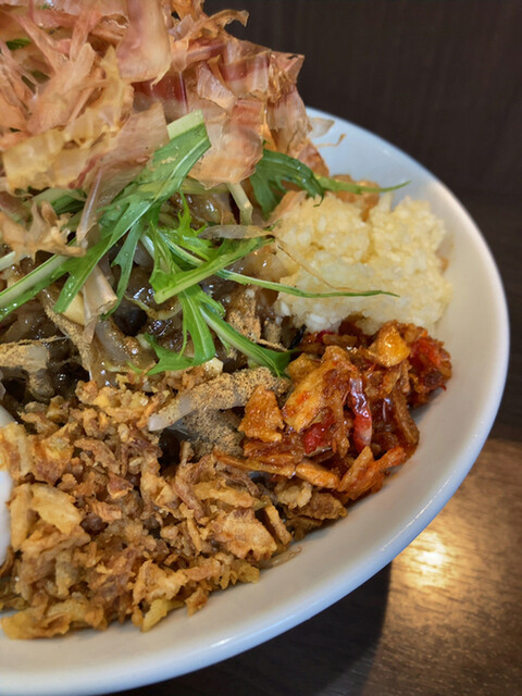 魚節と胡麻の風味が素晴らしく、甘辛肉ミンチもいいアクセントになっています。