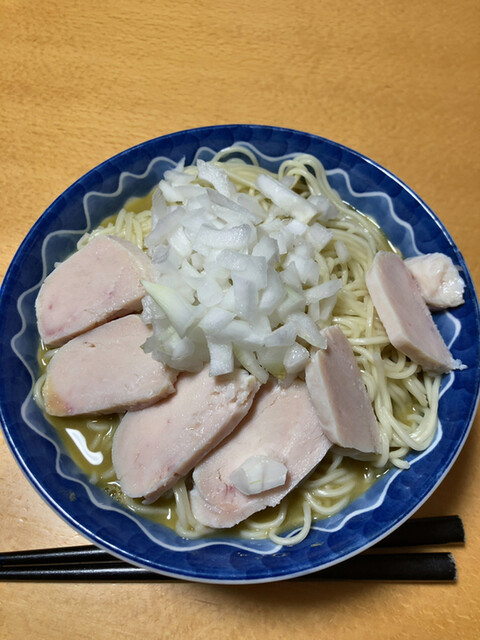 豆乳と鶏スープに芝麻醤とラー油、節の味のする冷たいラーメンなんです。