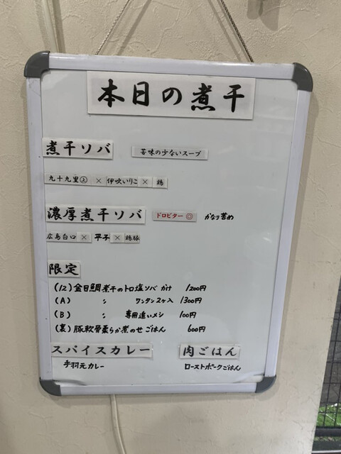 今日は限定が3種類提供されるとのこと、悩みますが今日は煮干をしっかり食べたく、逆に一択と言った感じです。