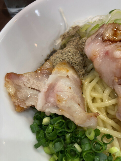 カルピスバターを使ったまぜソバには、吊るし焼き豚がこれでもかと乗っています。